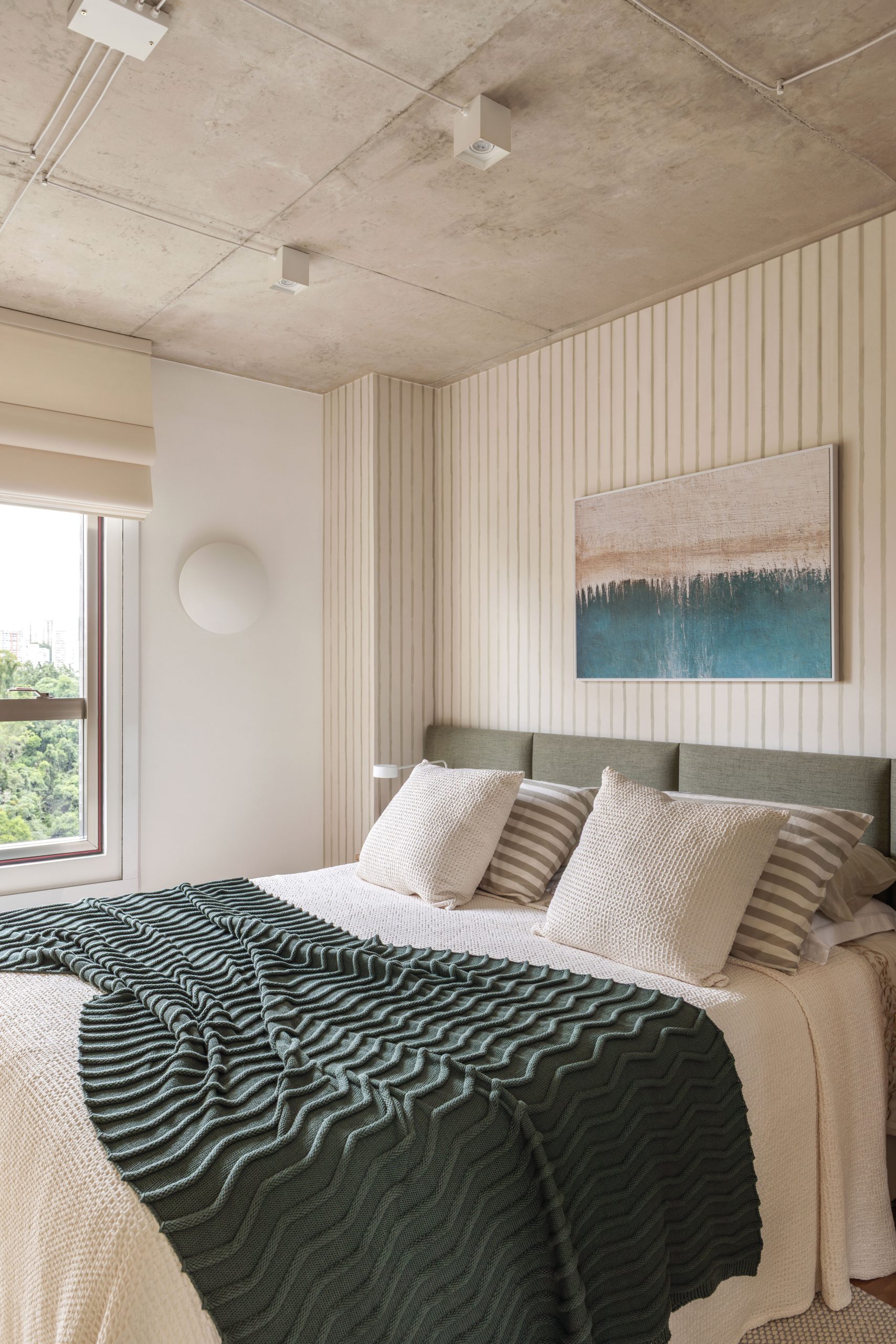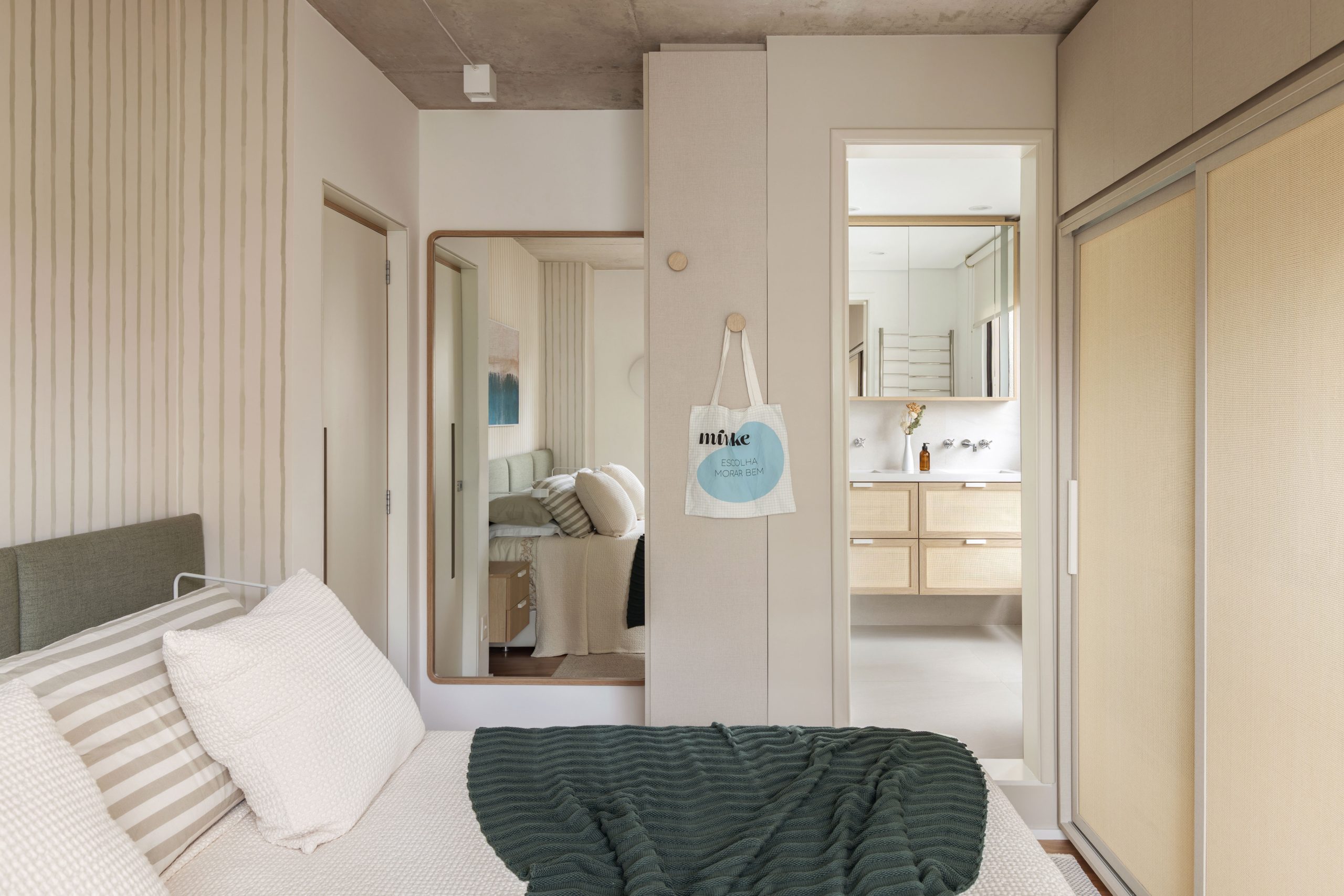 Com metragem de 70m², a transformação incluiu a implementação de uma suíte, trazendo mais conforto e funcionalidade ao espaço com banheiro exclusivo para o casal.
